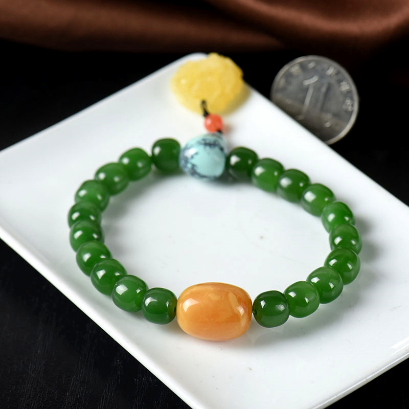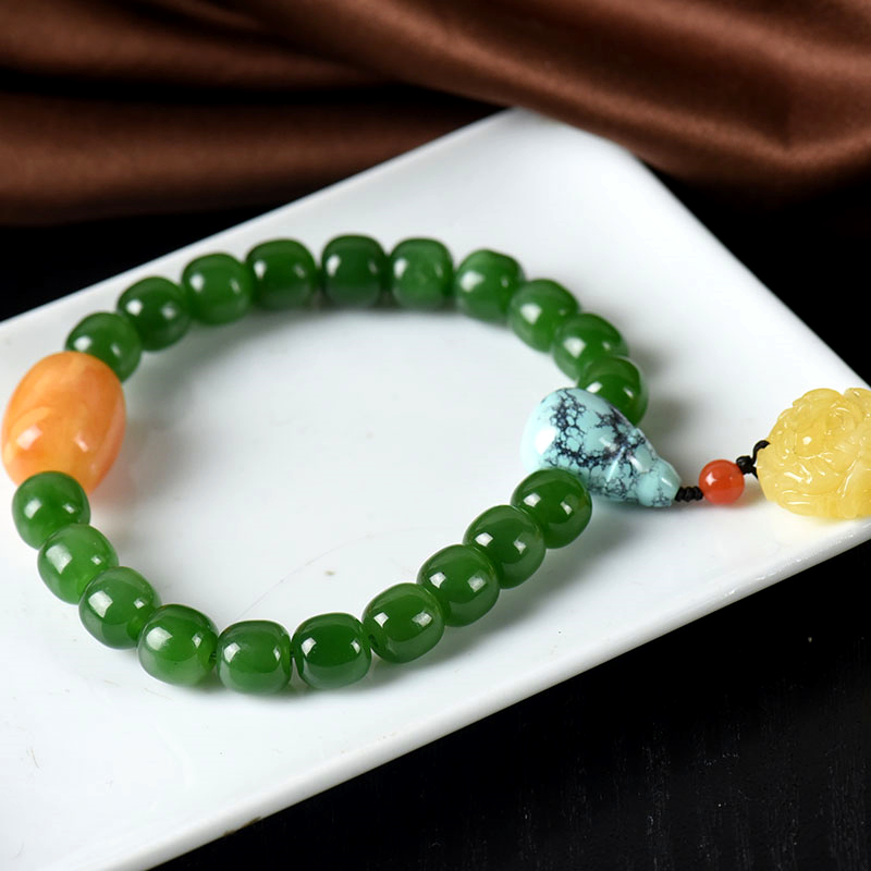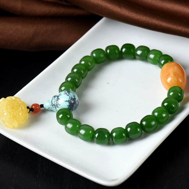 • [名  称] 山料和田碧玉老形珠单圈手串