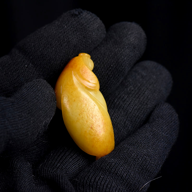 • 籽料和田玉黄沁玉兰花吊坠