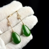 • 18K山料和田碧玉水滴耳坠