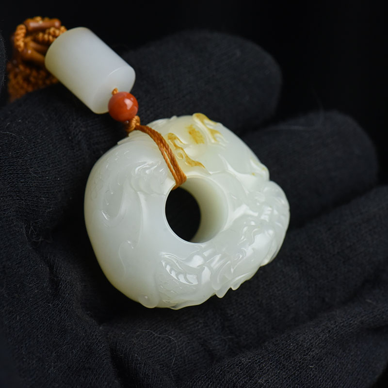 • 籽料和田白玉龙玉琮吊坠