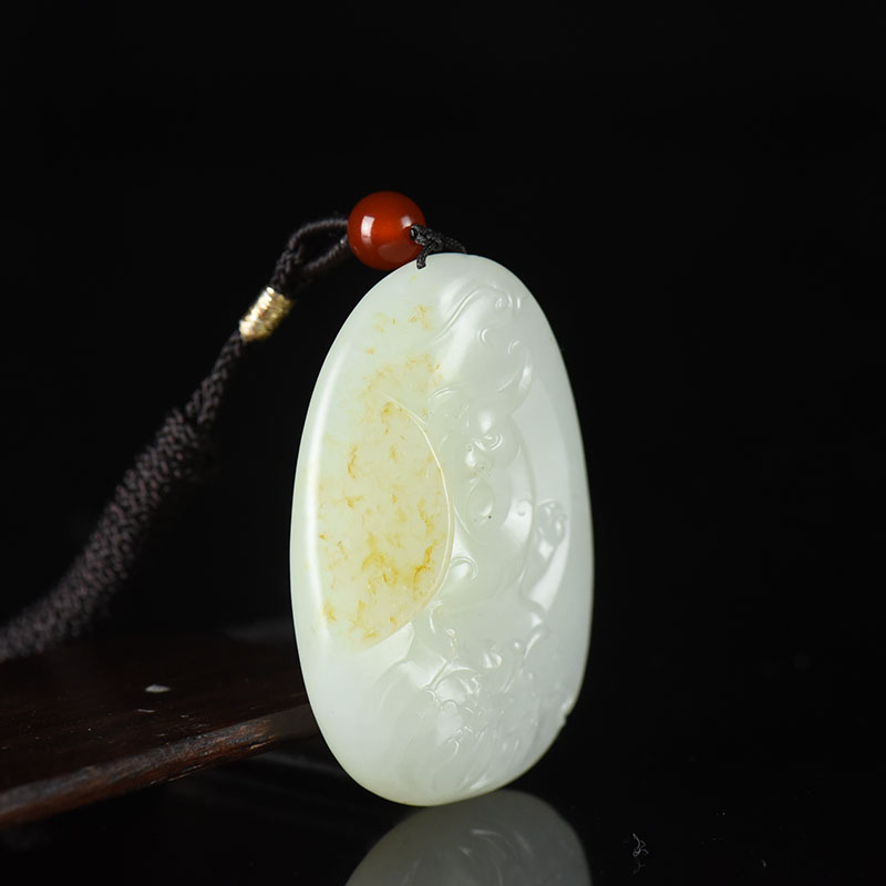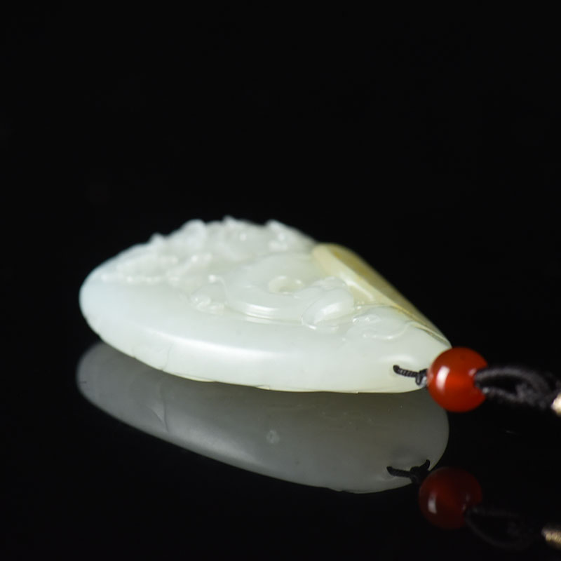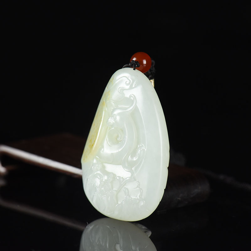 • [名  称] 籽料和田白玉凤穿牡丹吊坠