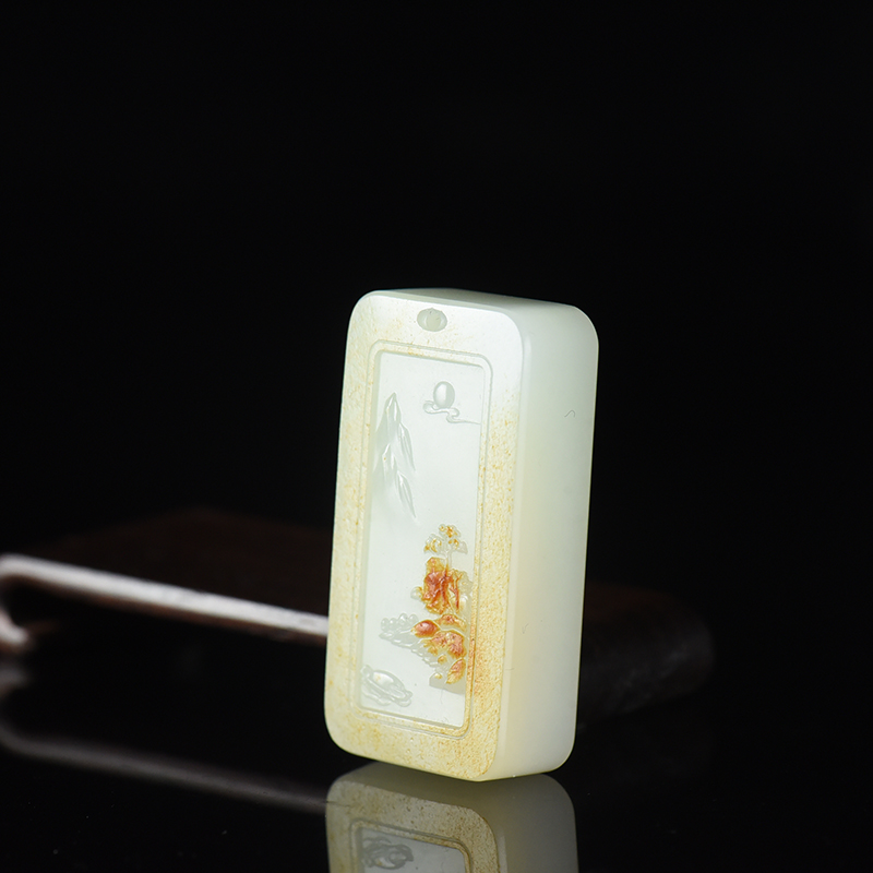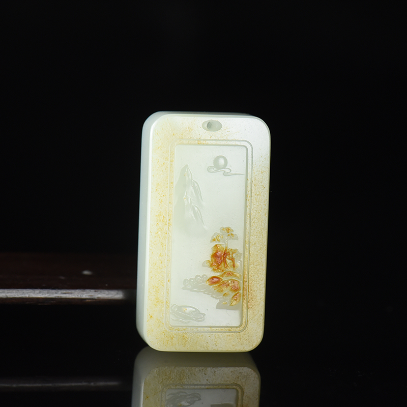 • 籽料和田白玉山水吊坠