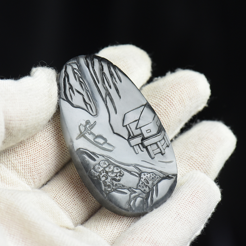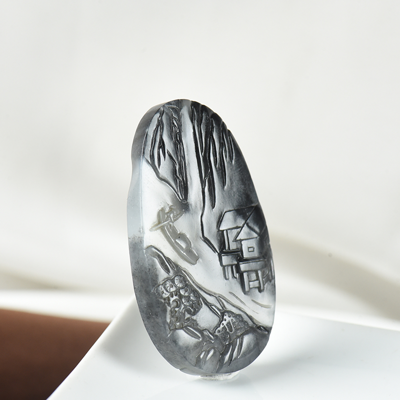 • 籽料和田玉青花山水吊坠