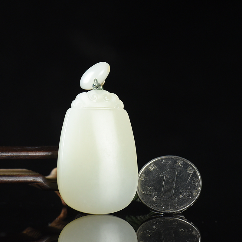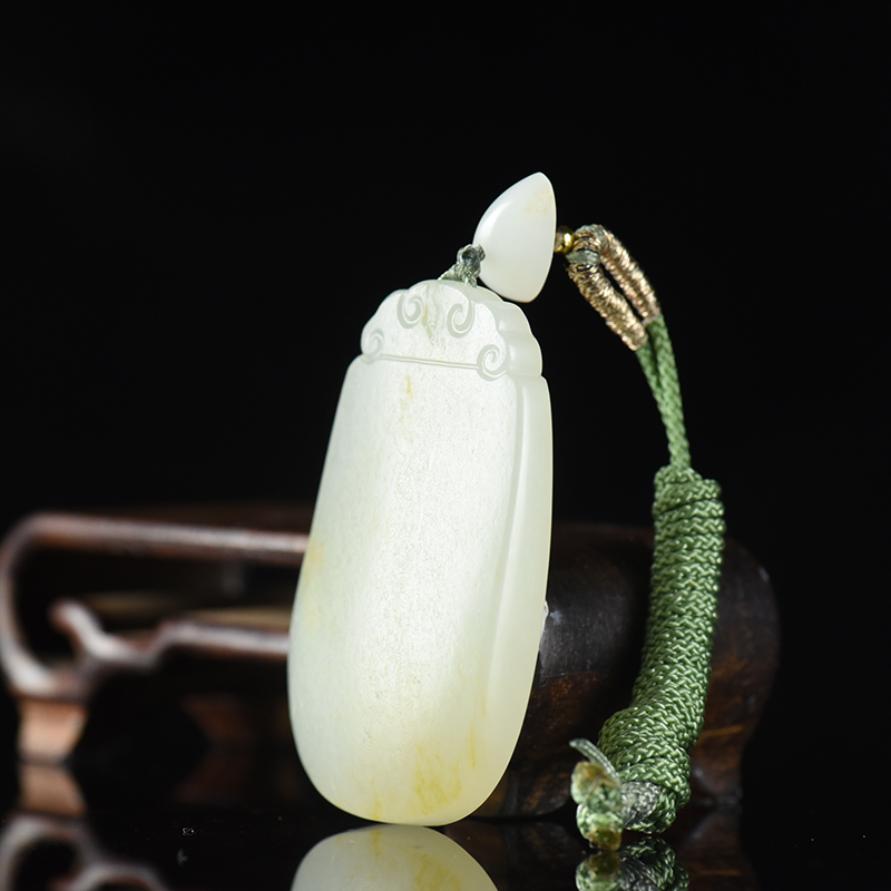 • 籽料和田白玉无事牌吊坠