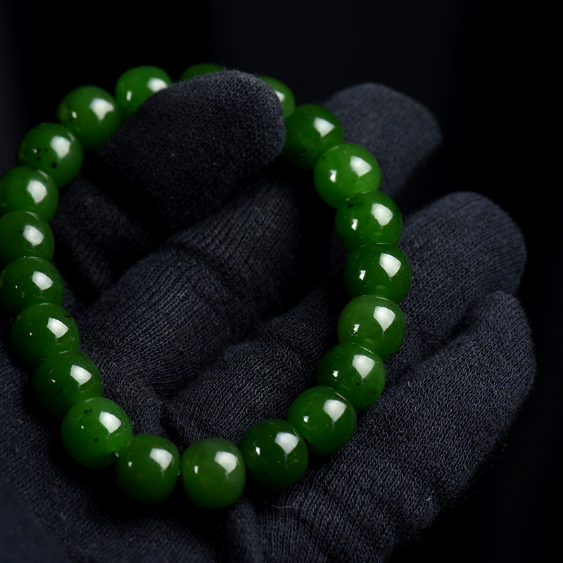 • [名  称] 籽料和田碧玉老形珠单圈手串