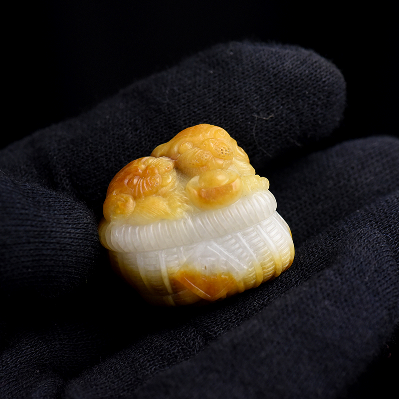 • [名  称] 籽料和田玉黄沁舐犊情深吊坠