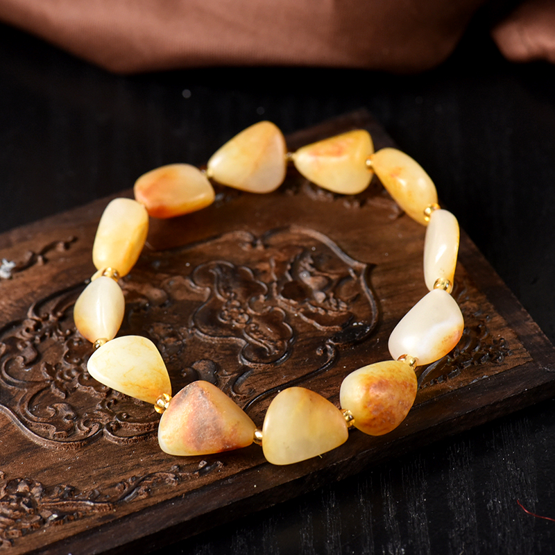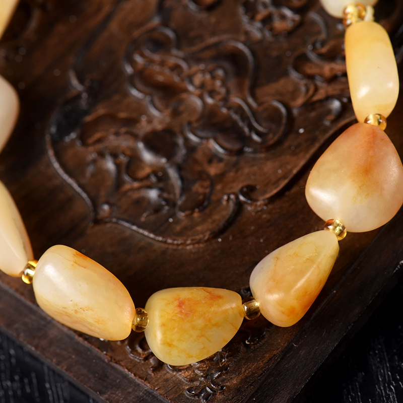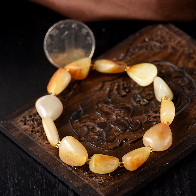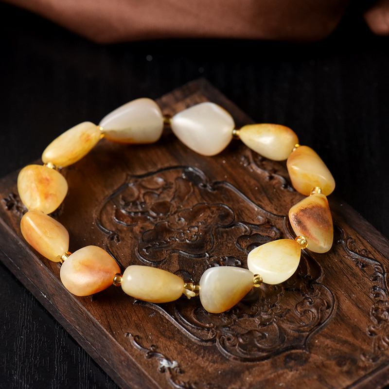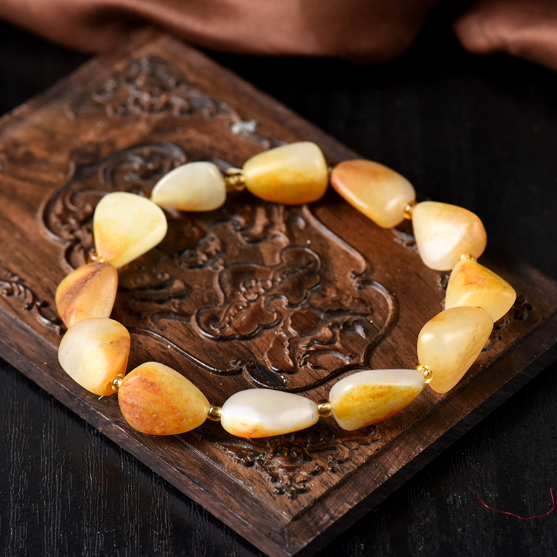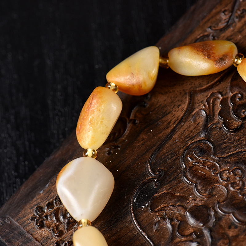 • [名  称] 籽料和田白玉随形原石单圈手串