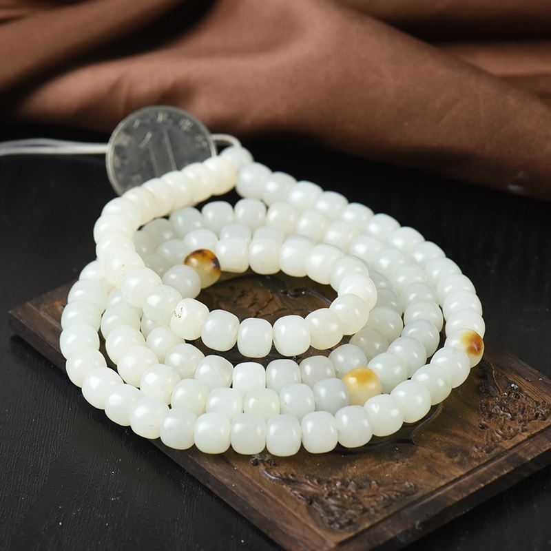 • [名  称] 籽料和田白玉老形珠108佛珠
