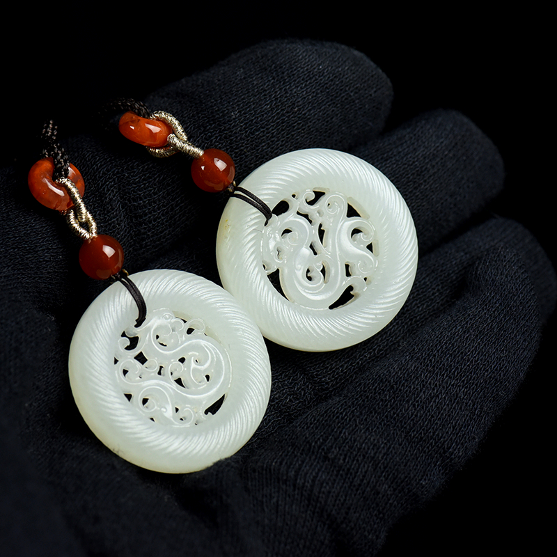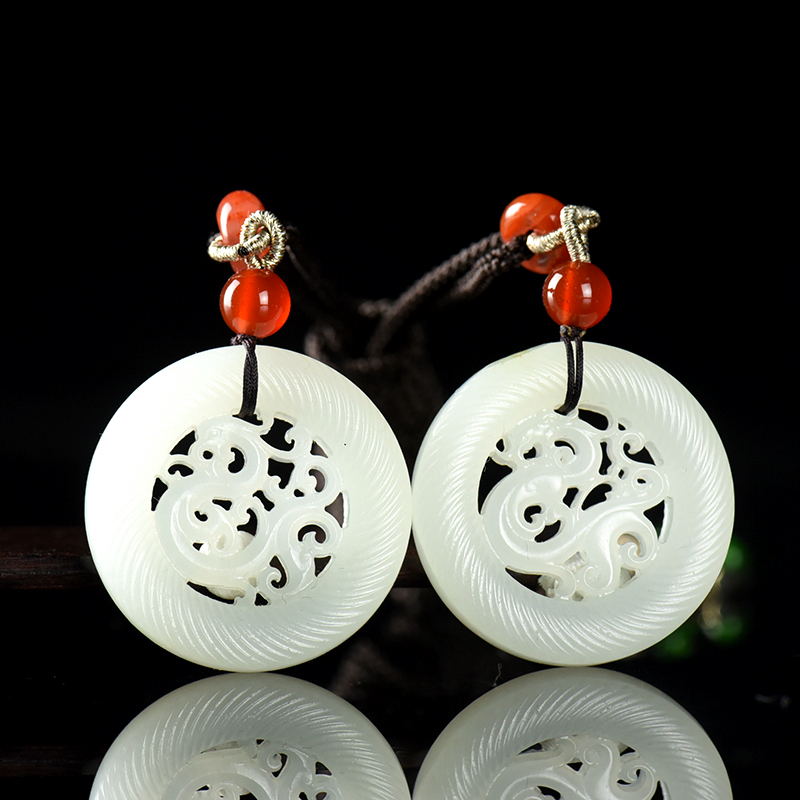• [名  称] 籽料和田白玉龙凤吊坠(二件)