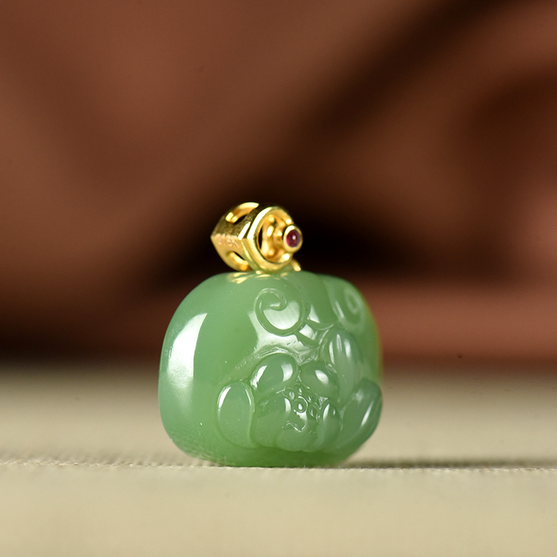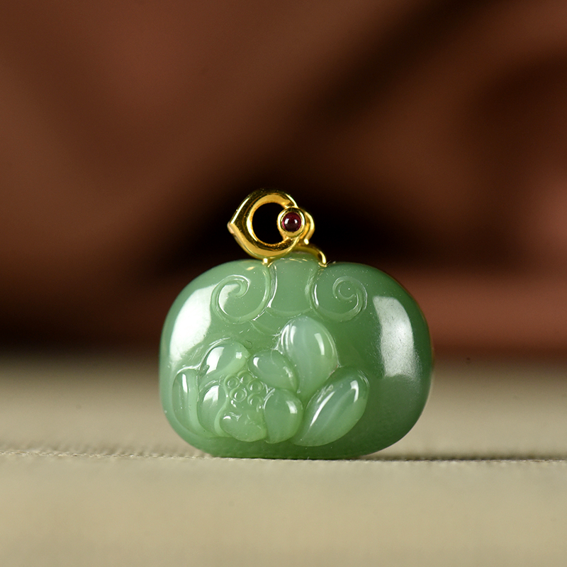 • [名  称] 18K山料和田碧玉冰底粉绿荷花锁吊坠