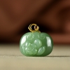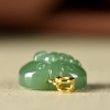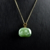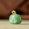 • 18K山料和田碧玉冰底粉绿荷花锁吊坠
