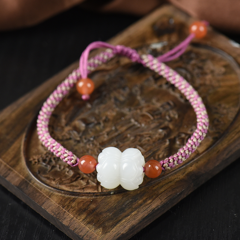 • [名  称] 山流水料和田白玉并蒂莲手绳