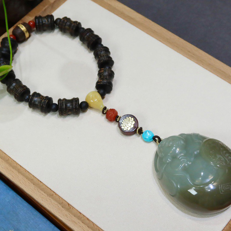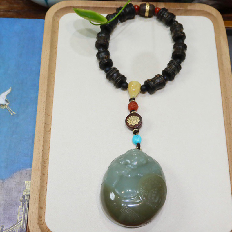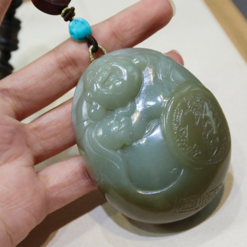 • 山料和田糖白玉福佛相伴手把件