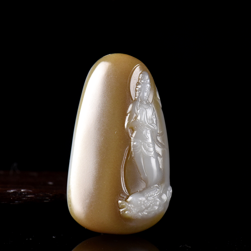 • 山料和田糖白玉观音吊坠
