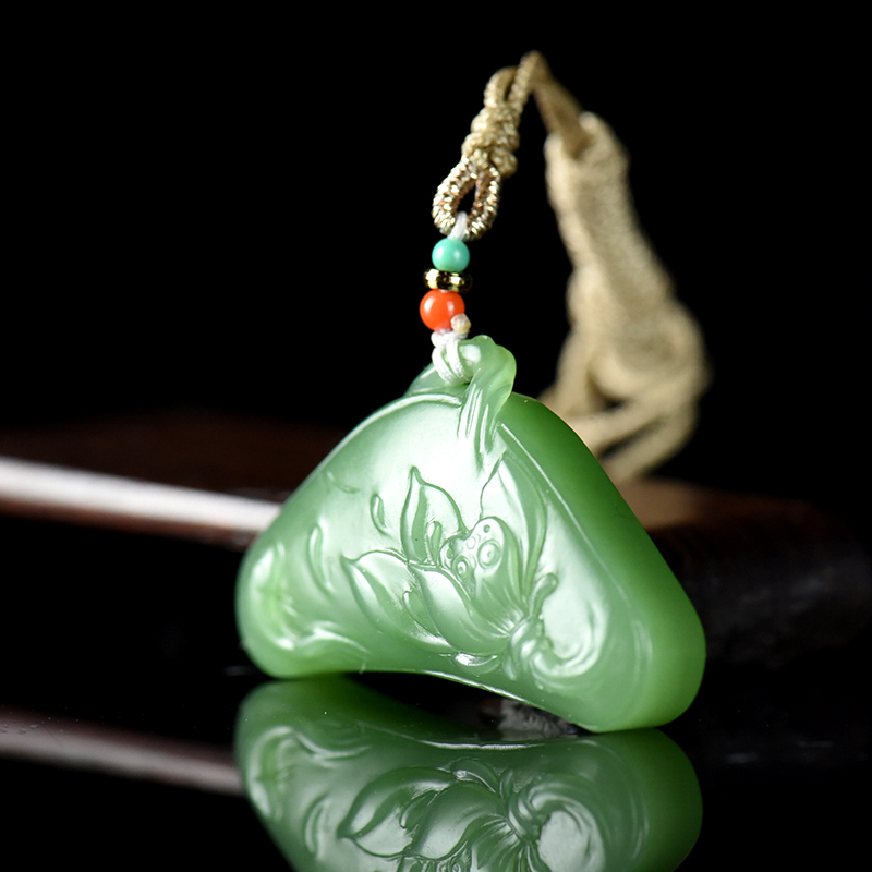 • [名  称] 山料和田碧玉粉青莲花锁吊坠