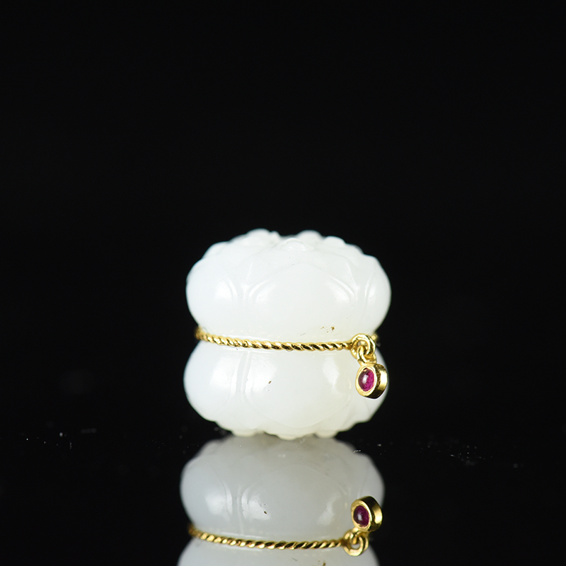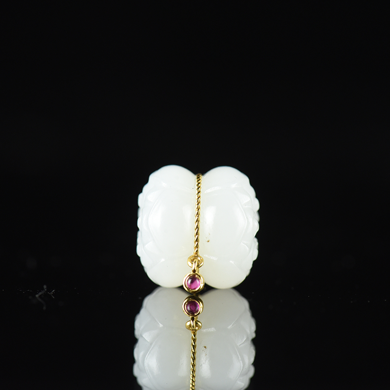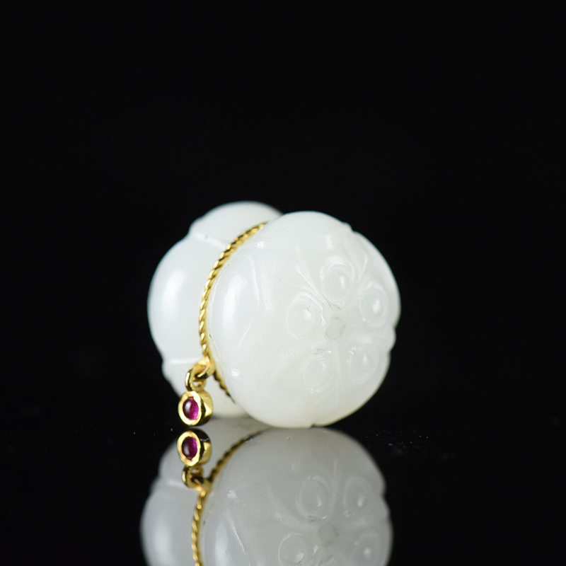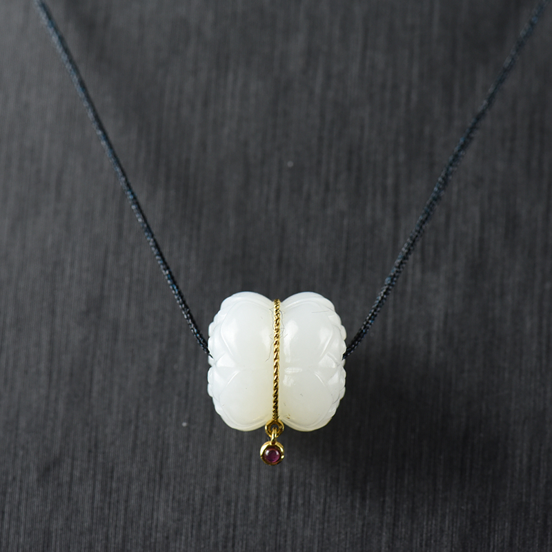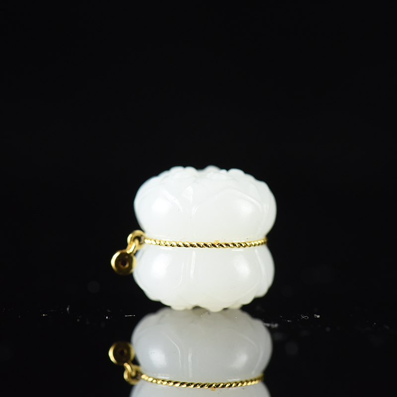 • [名  称] 18K山料和田白玉并蒂莲吊坠