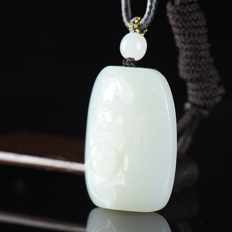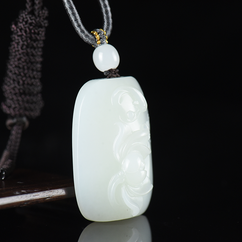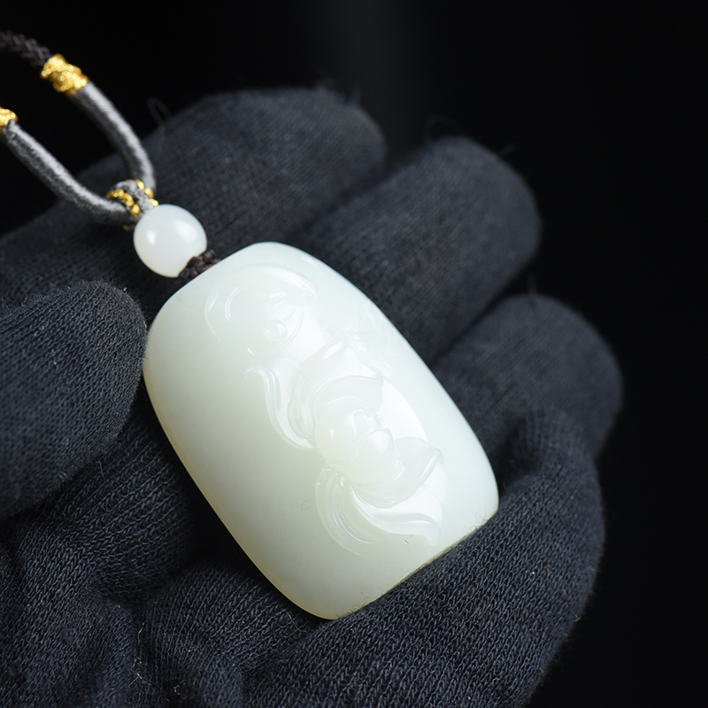 • 籽料和田白玉荷花吊坠