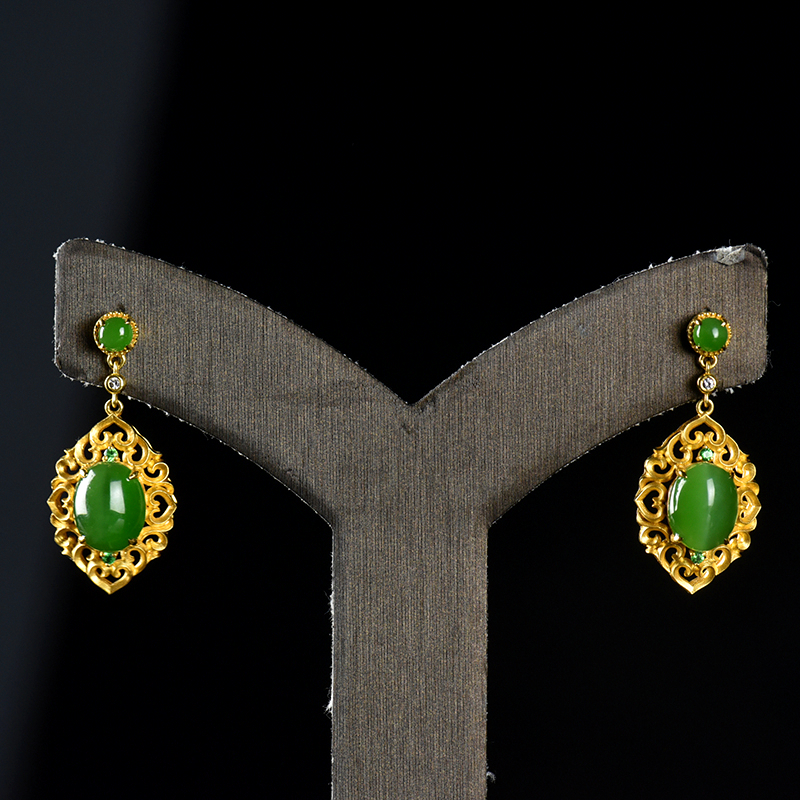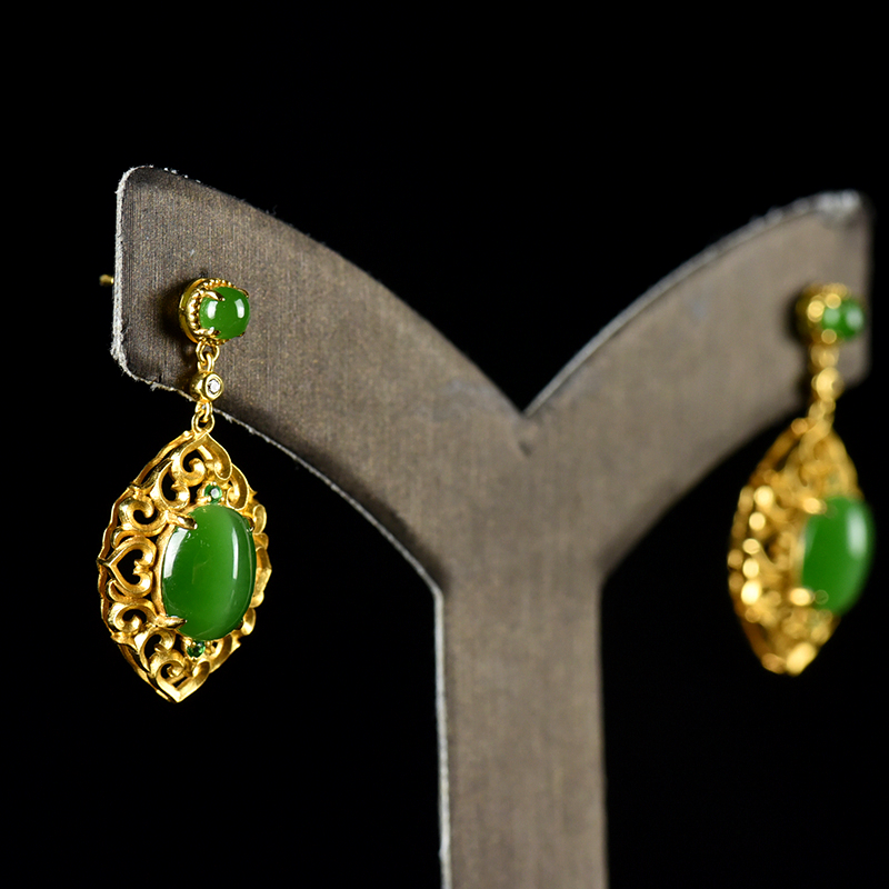 • [名  称] 18K山料和田碧玉猫眼耳坠