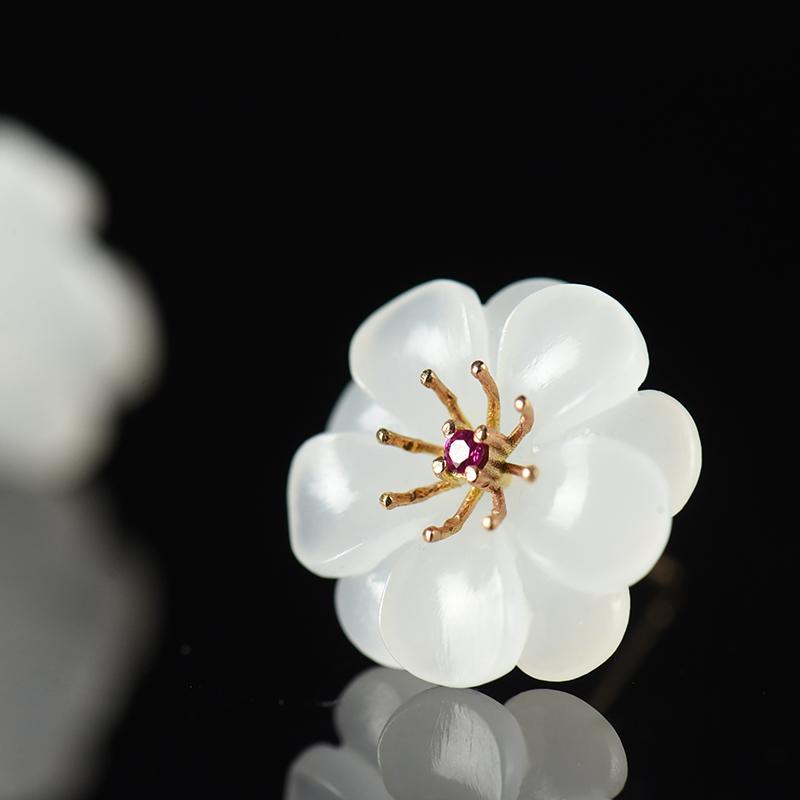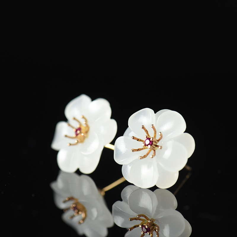 • [名  称] 18K山料和田白玉花耳钉