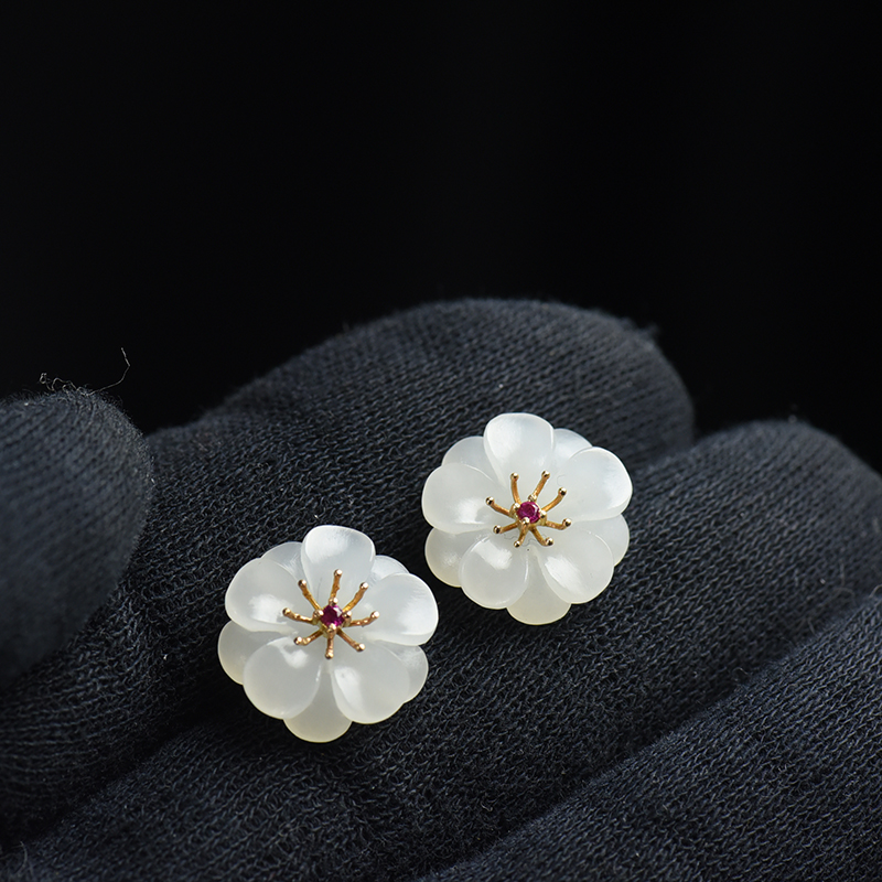• 18K山料和田白玉花耳钉