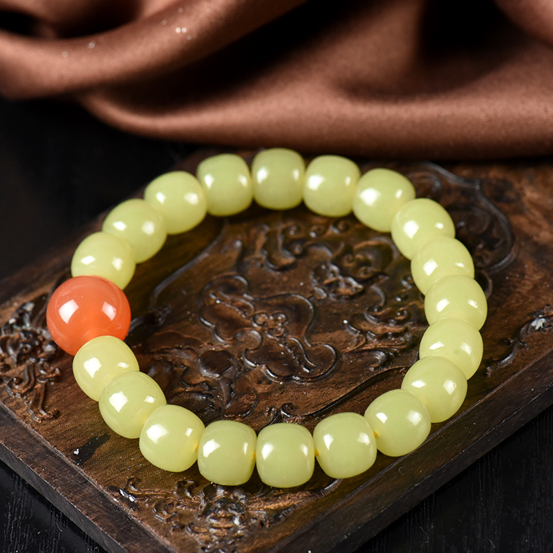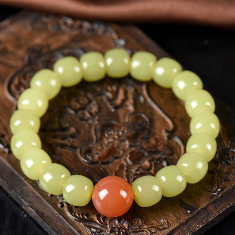 • [名  称] 山料和田黄玉老形珠单圈手串