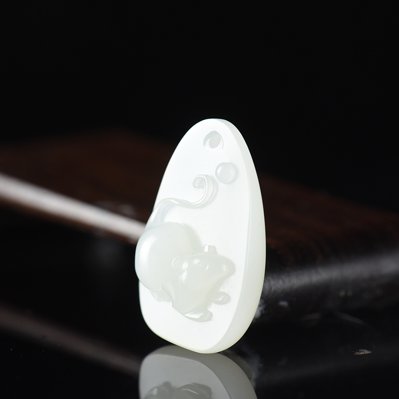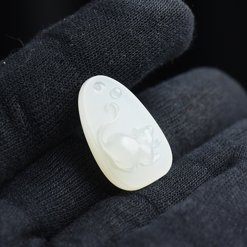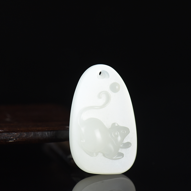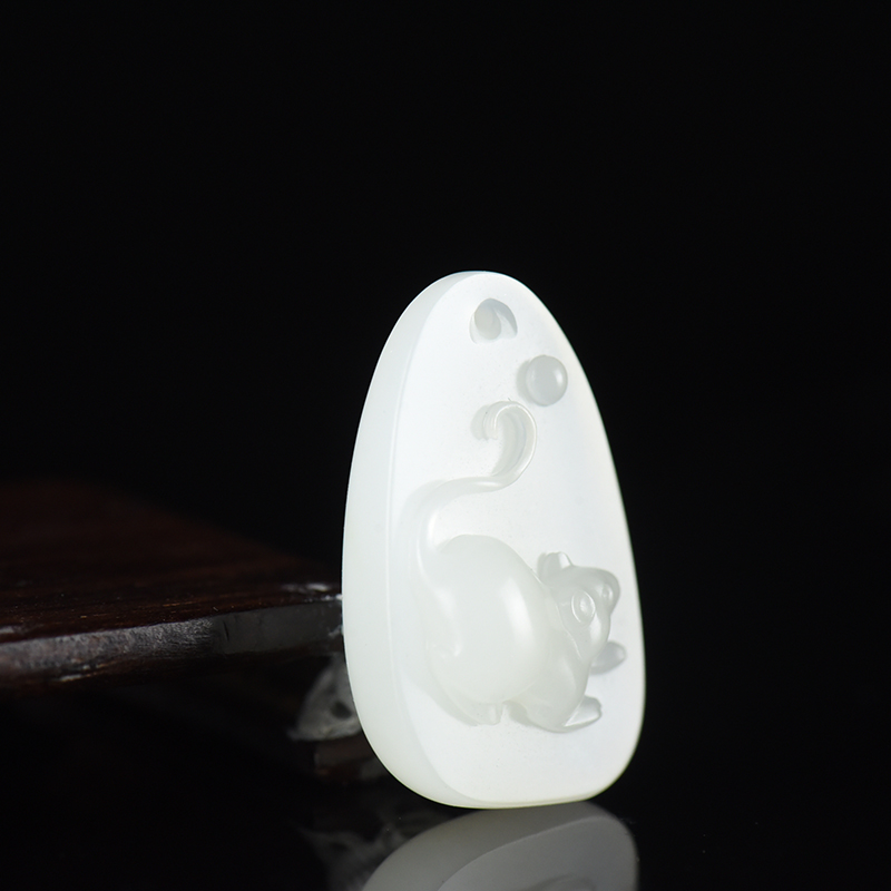 • 籽料和田白玉子鼠吊坠