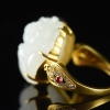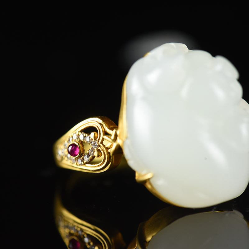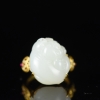 • 18K籽料和田白玉福猪戒指