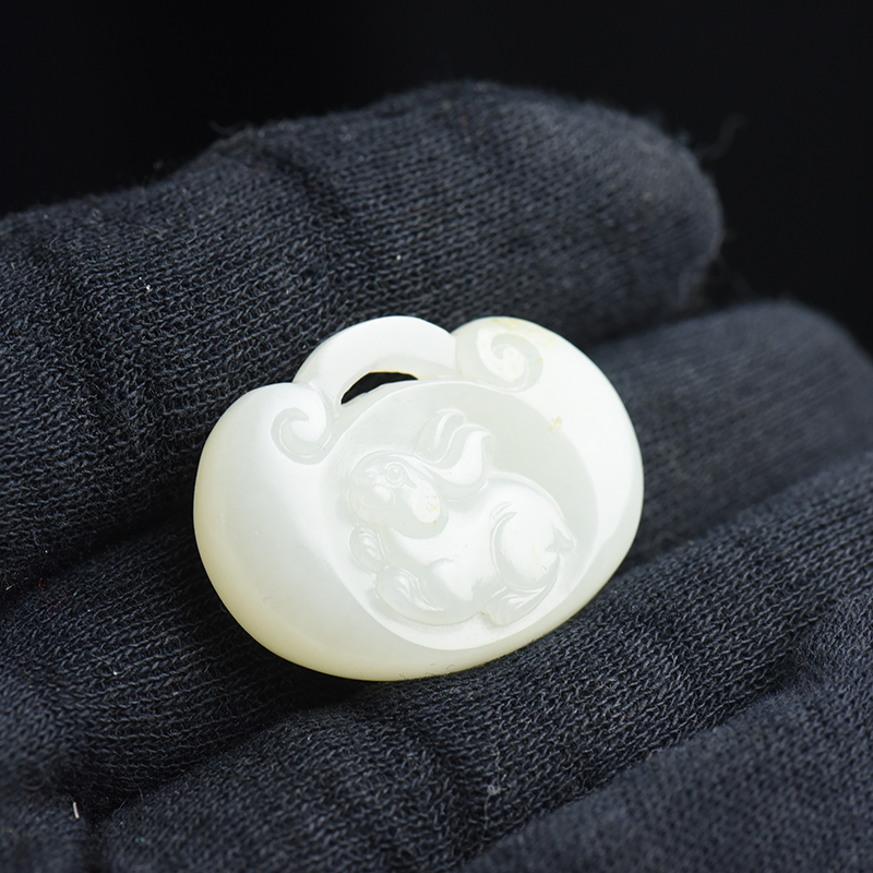 • 籽料和田白玉兔子锁吊坠