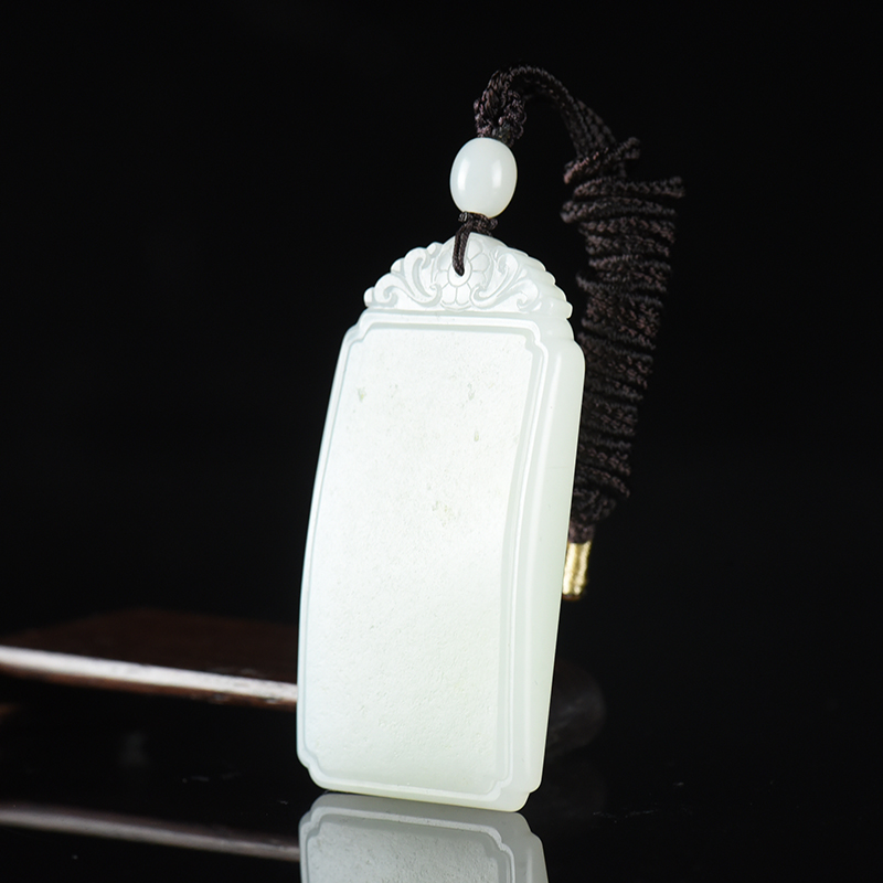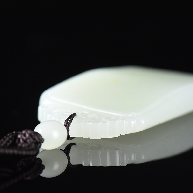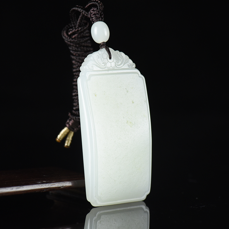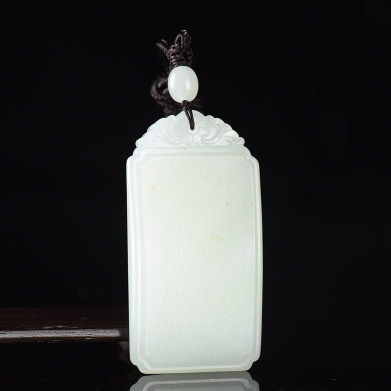 • 籽料和田白玉无事牌吊坠