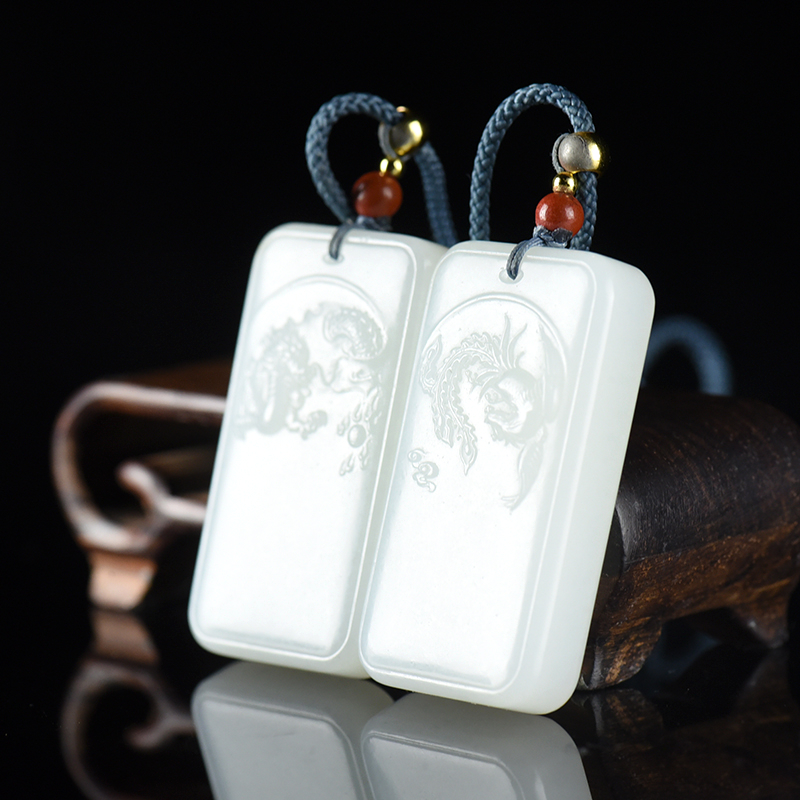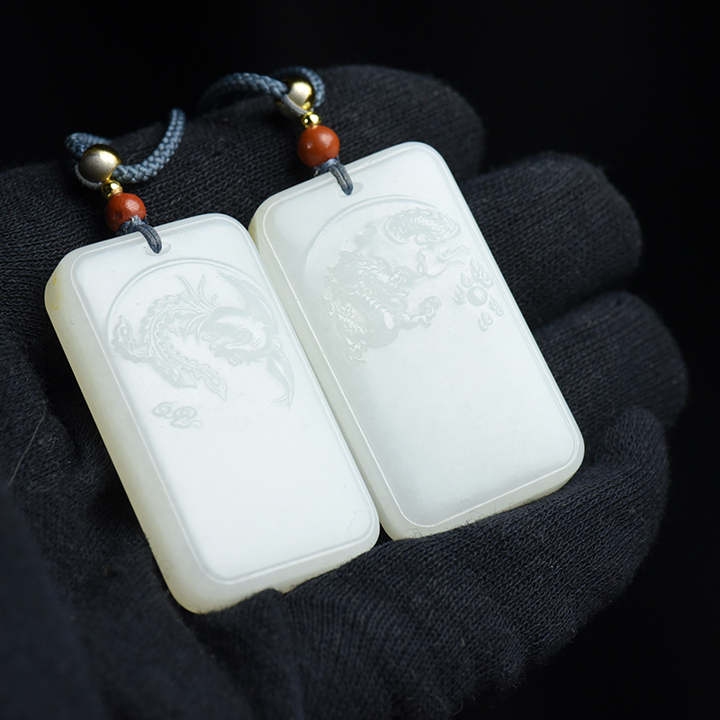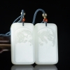 • 山流水料和田白玉龙凤吊坠