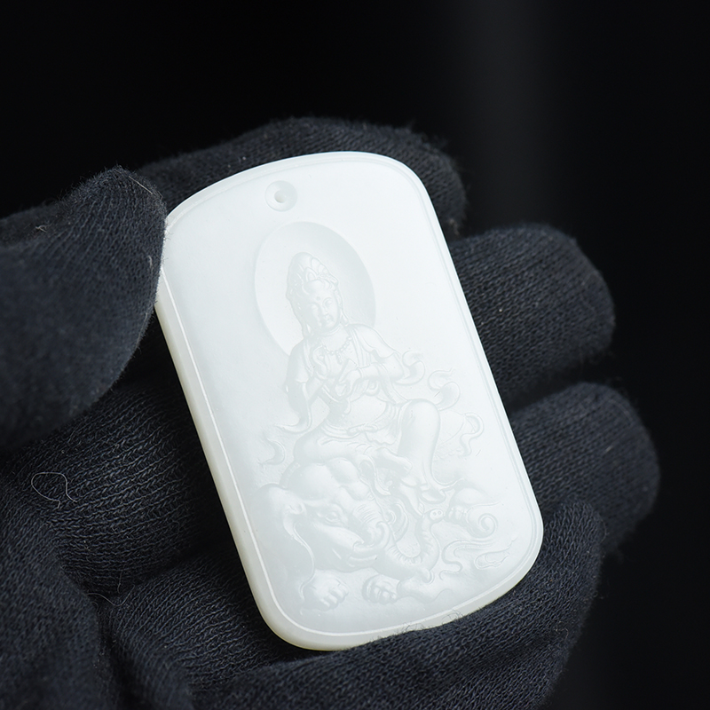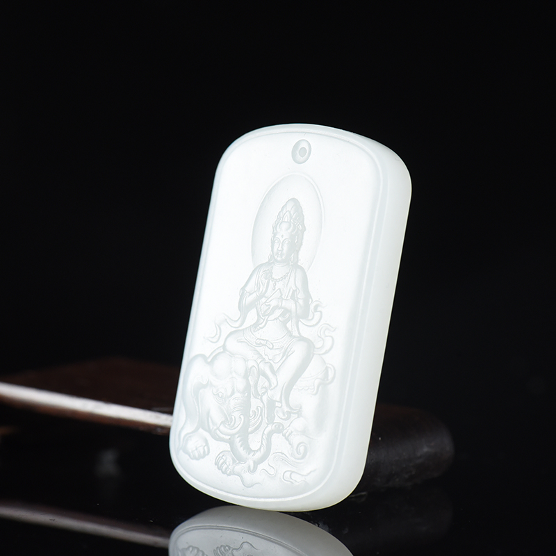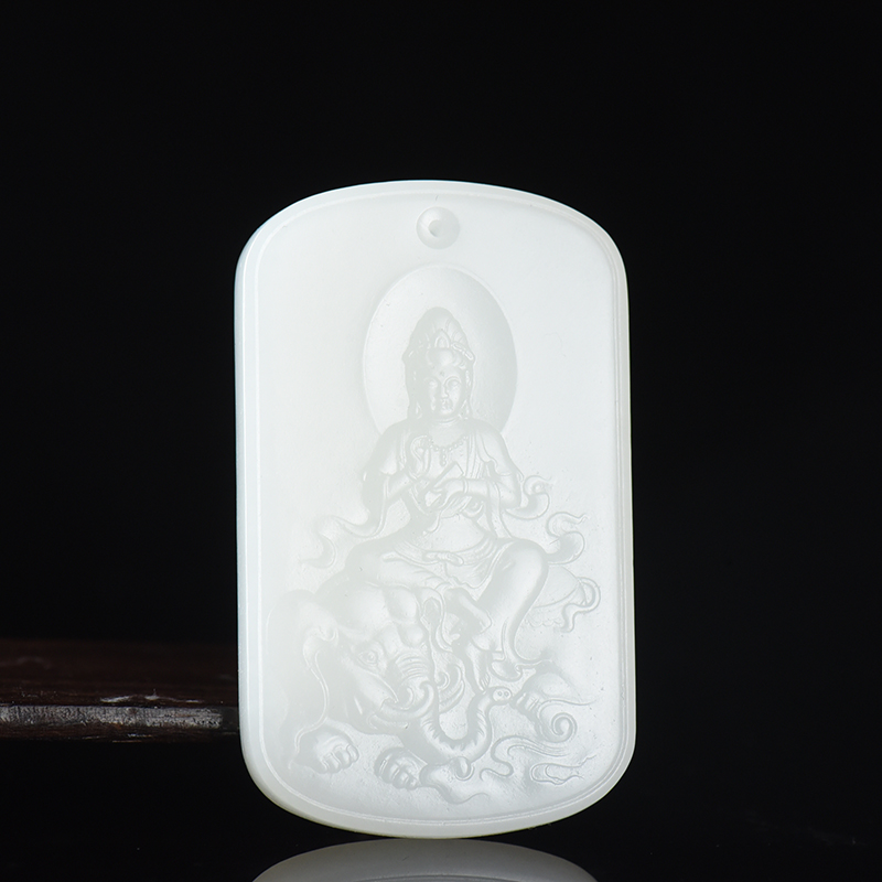 • 山流水料和田羊脂白玉普贤菩萨吊坠