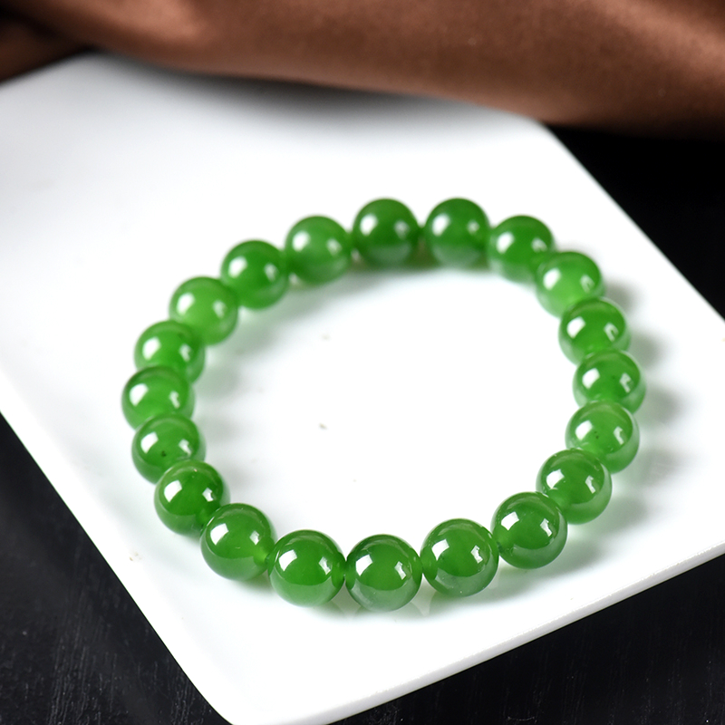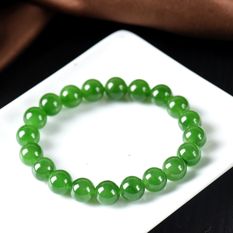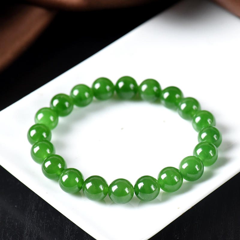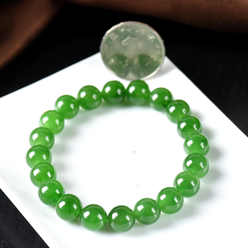 • 9.5mm山料和田碧玉菠菜绿单圈手串