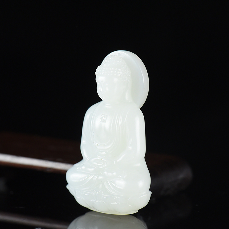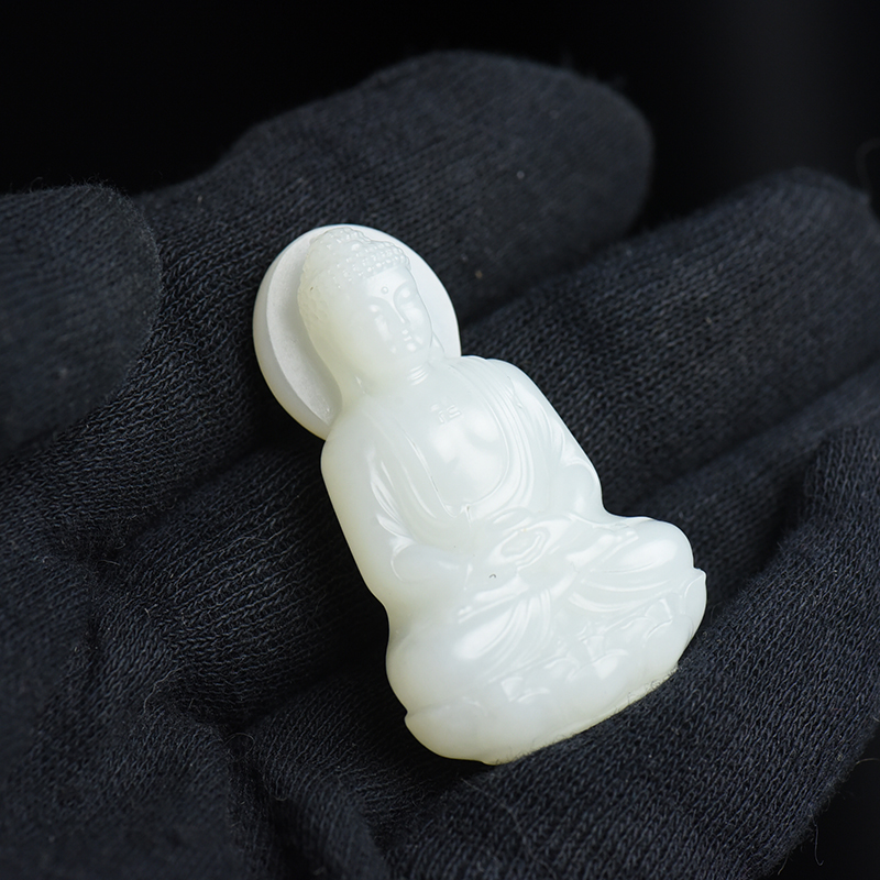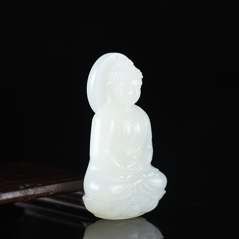• 山流水料和田白玉大日如来吊坠