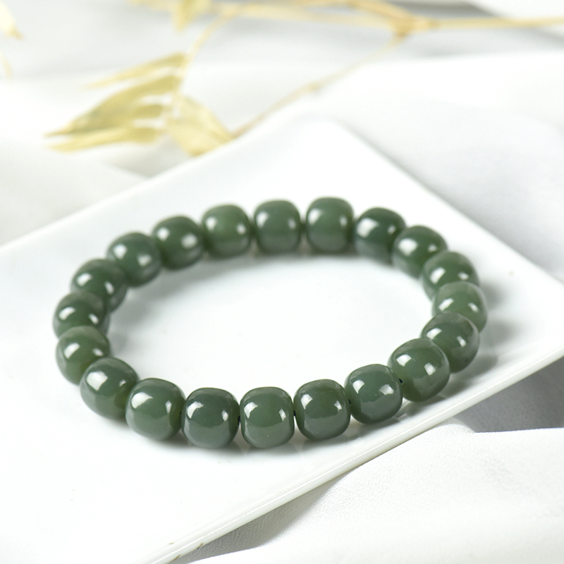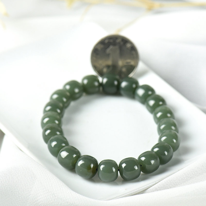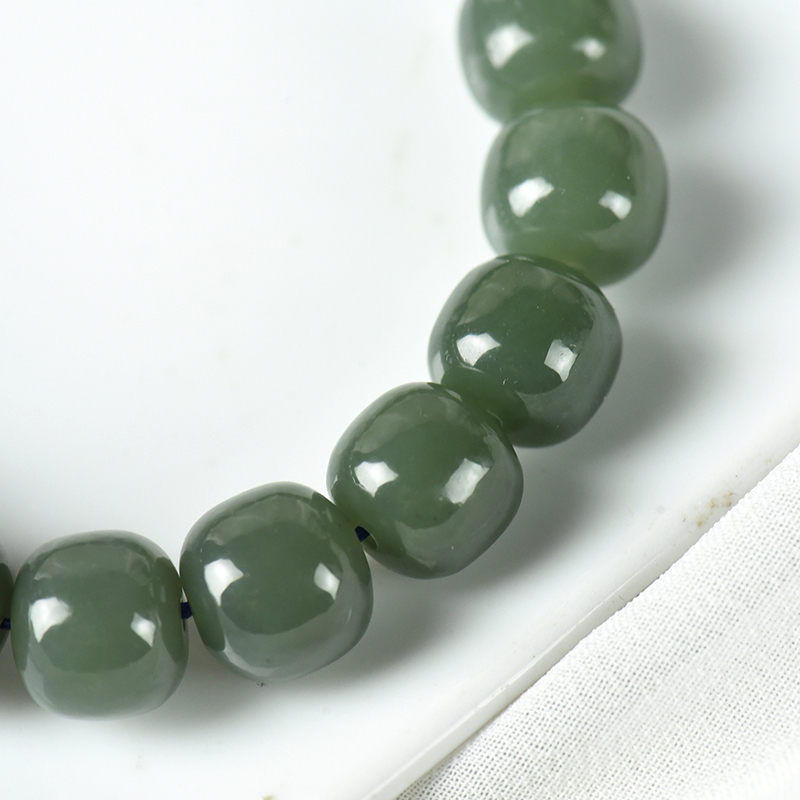 • 山料和田青玉老形珠单圈手串