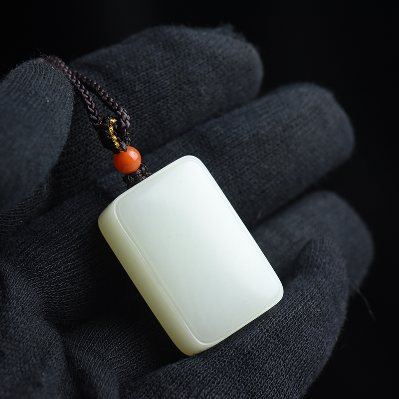 • 籽料和田白玉无事牌吊坠