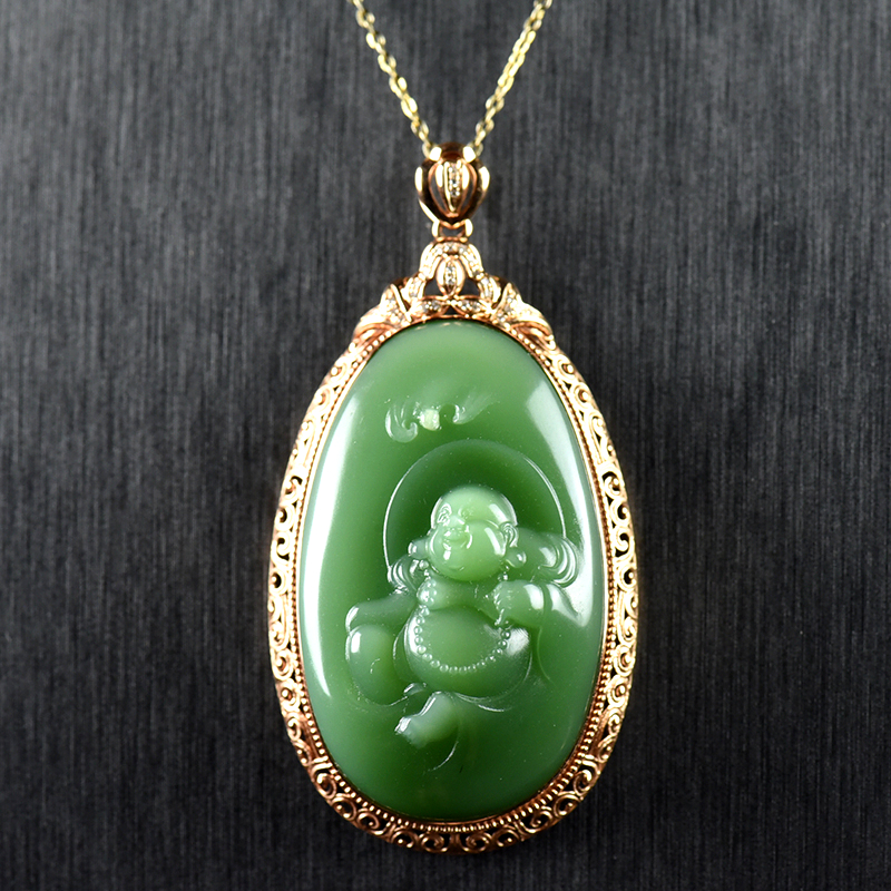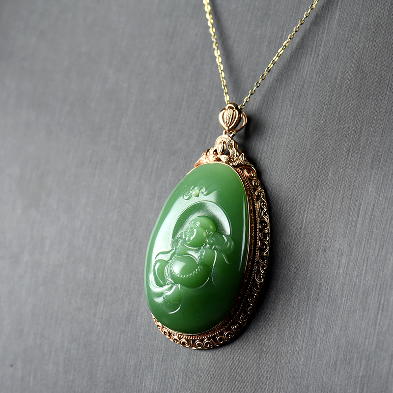 • 18K山料和田碧玉弥勒佛吊坠