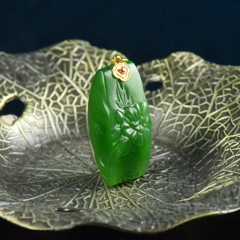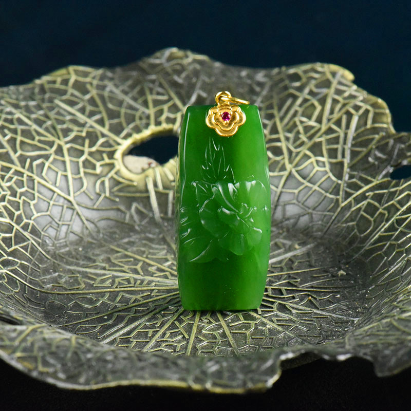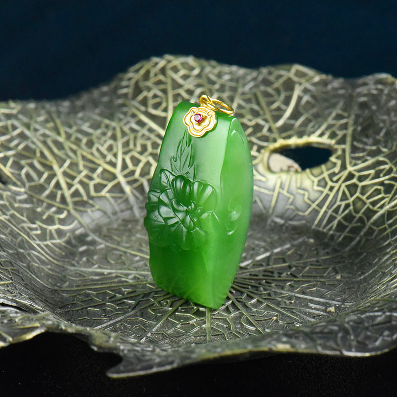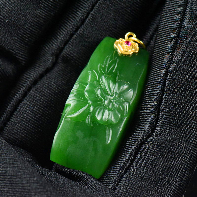 • [名  称] 18K山料和田碧玉荷花吊坠