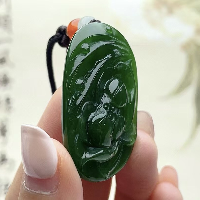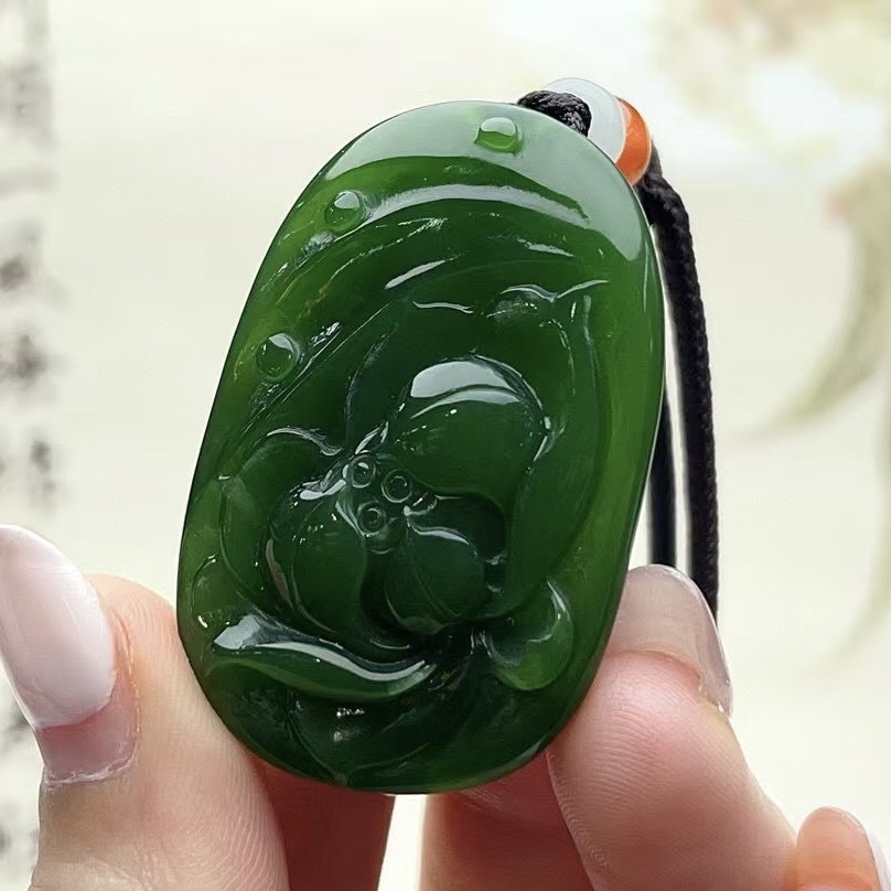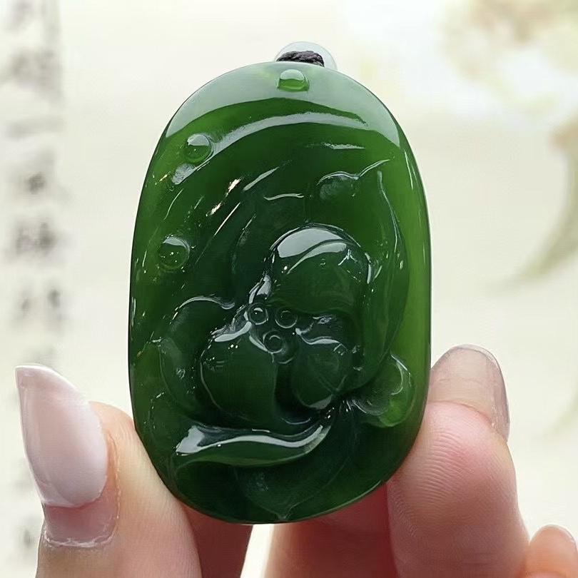 • 和田碧玉荷花吊坠