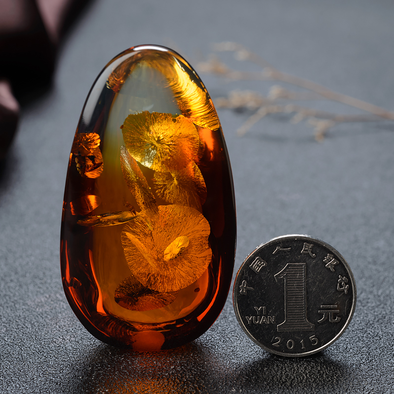 花珀圆珠吊坠