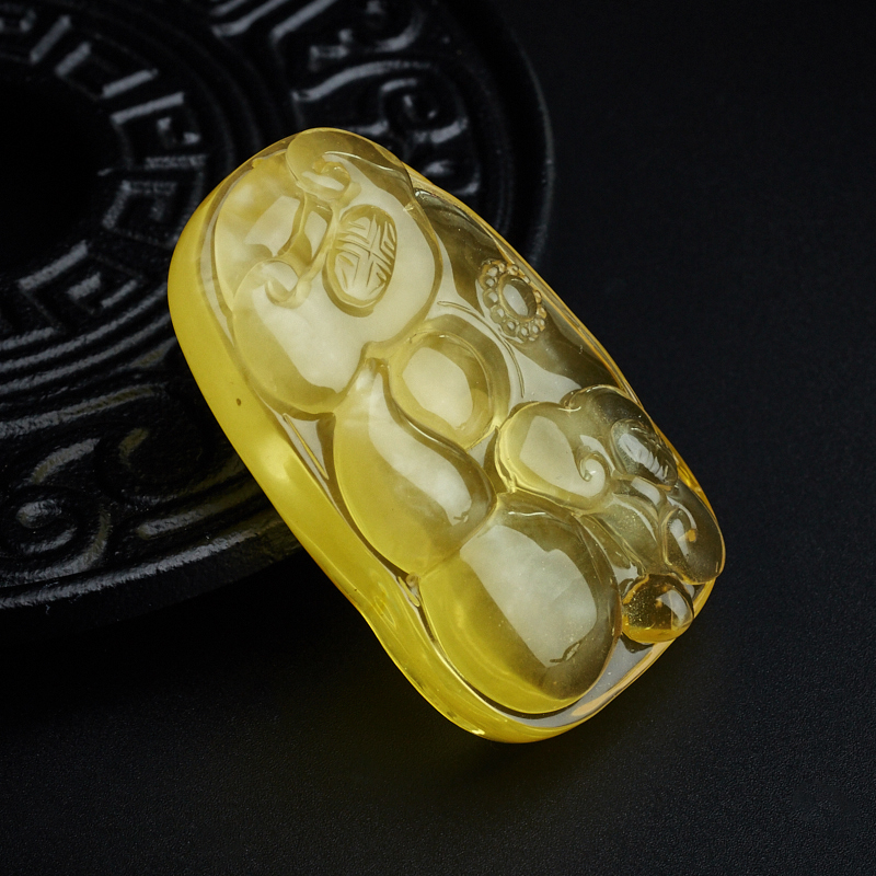 • [产品描述] 金包蜜福禄吉祥吊坠,质地莹润柔和,造型大气、尺寸大气。金包蜜虽蜜质不满却别有通透立体之意境,正面以圆润的线条雕刻葫芦、如意等祥瑞之物,寓意子孙万代,福禄双全,吉祥如意,幸福美满。