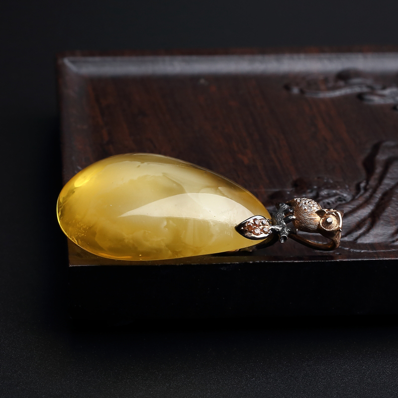 • 18K镶钻金包蜜水滴吊坠-红掌柜珠