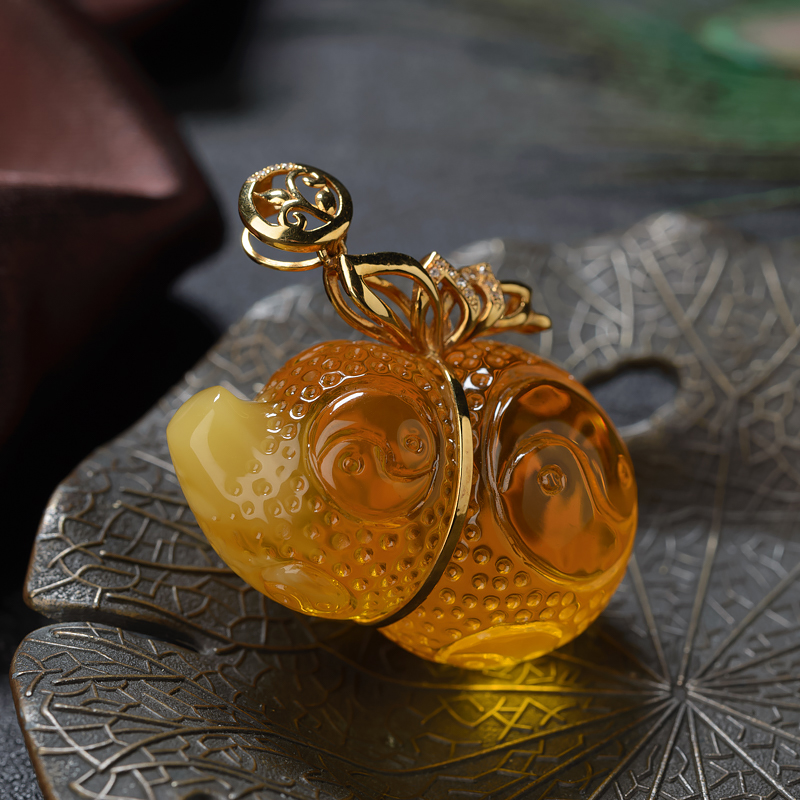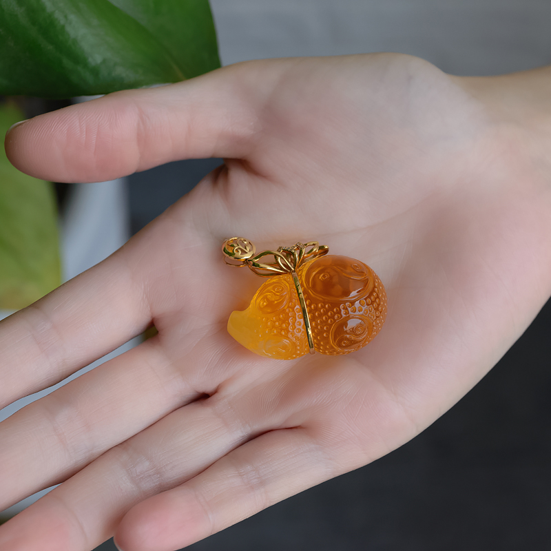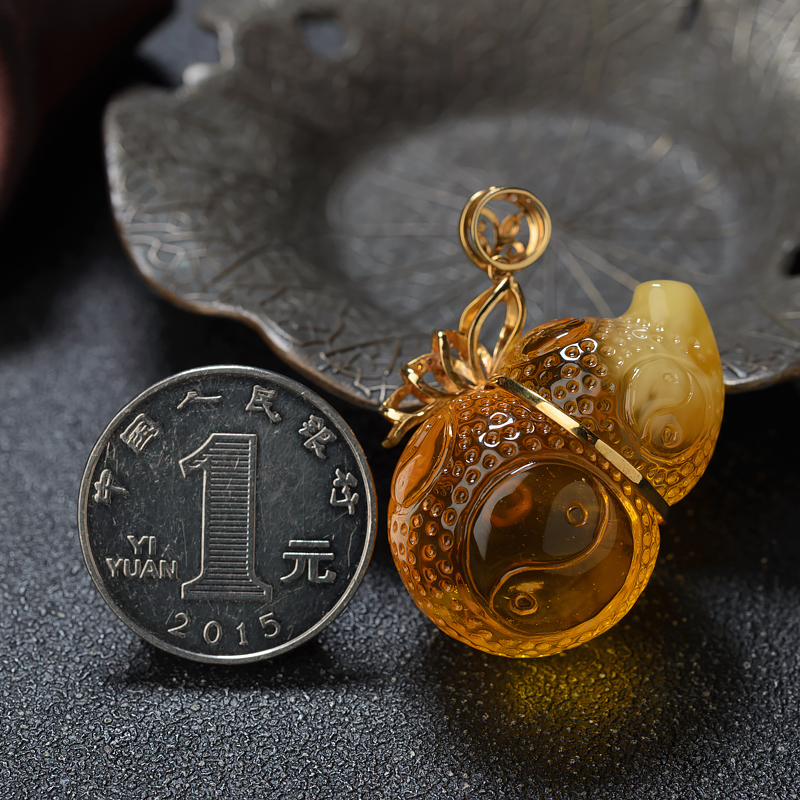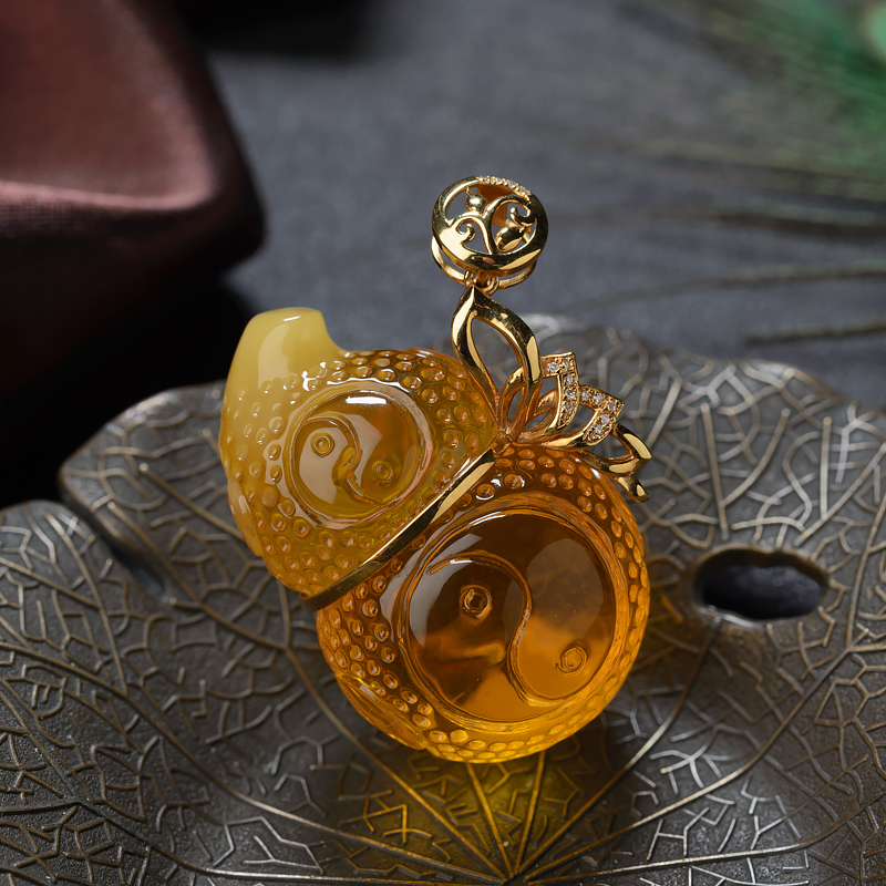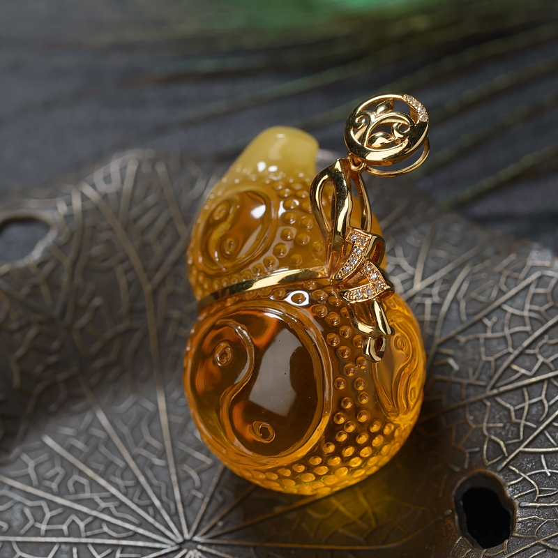 • 18K鸡油黄金绞蜜葫芦吊坠