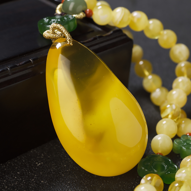 • 鸡油黄金绞蜜水滴吊坠