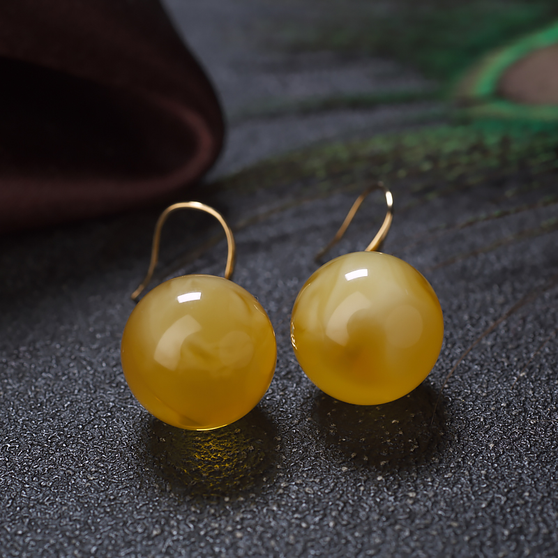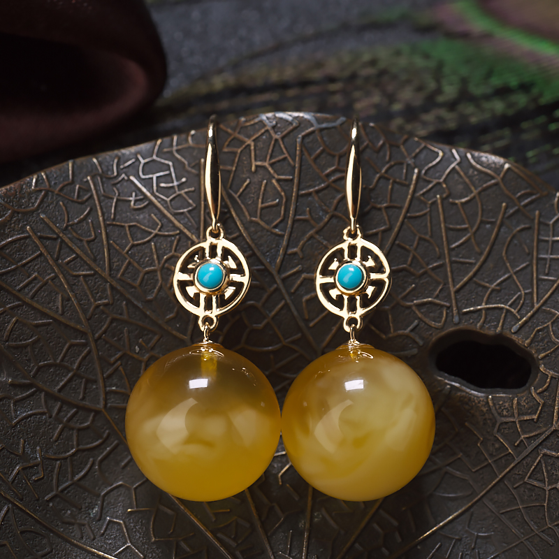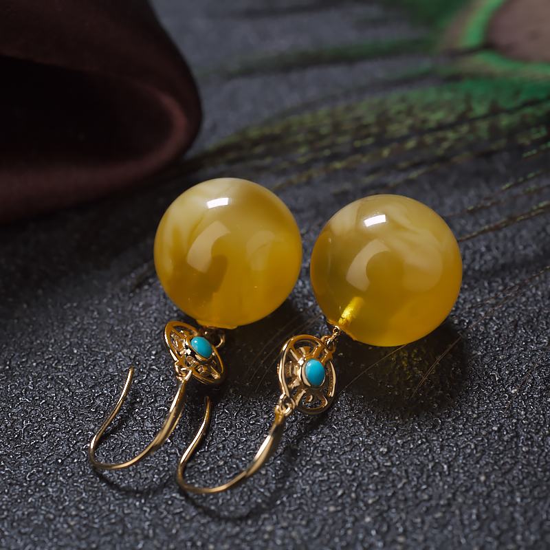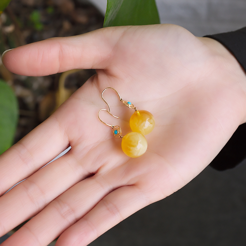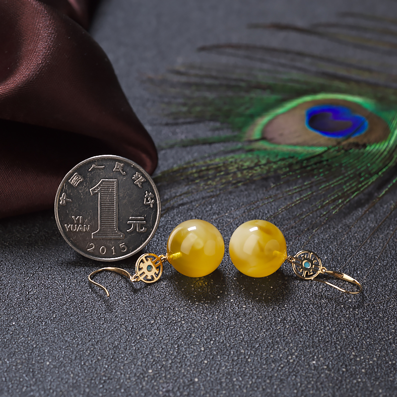 18k鸡油黄金绞蜜蜡圆珠吊坠