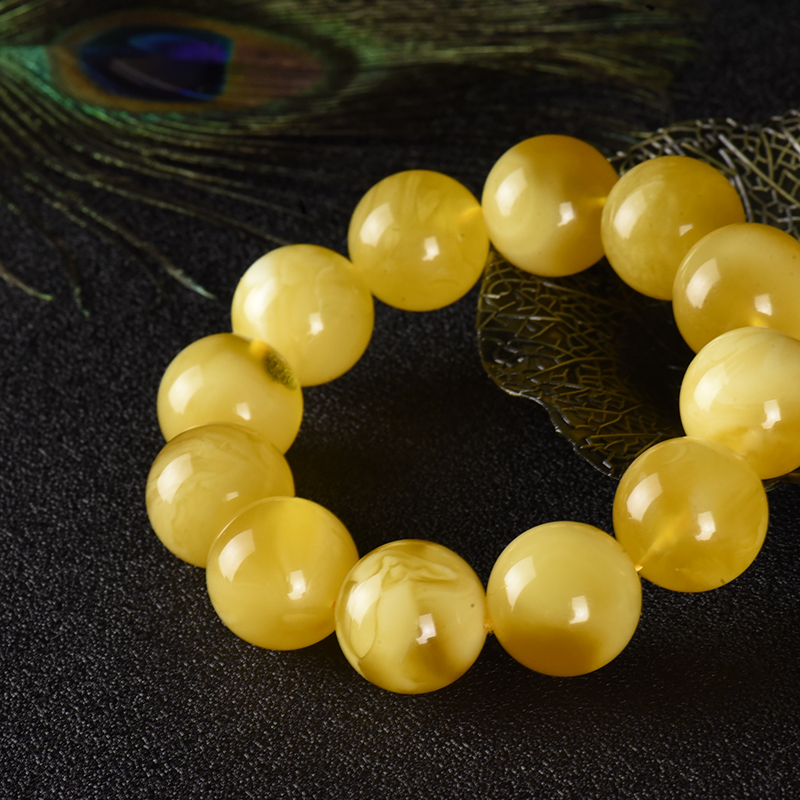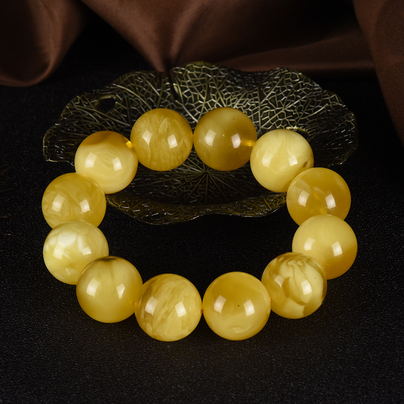 • 20mm鸡油黄金绞蜜蜜蜡单圈手串
