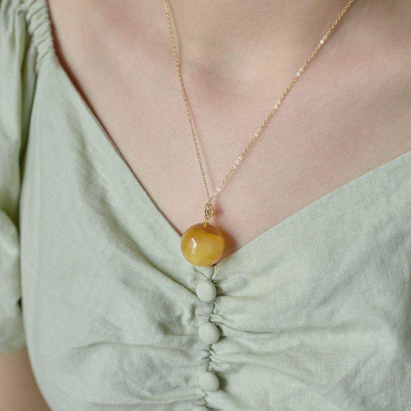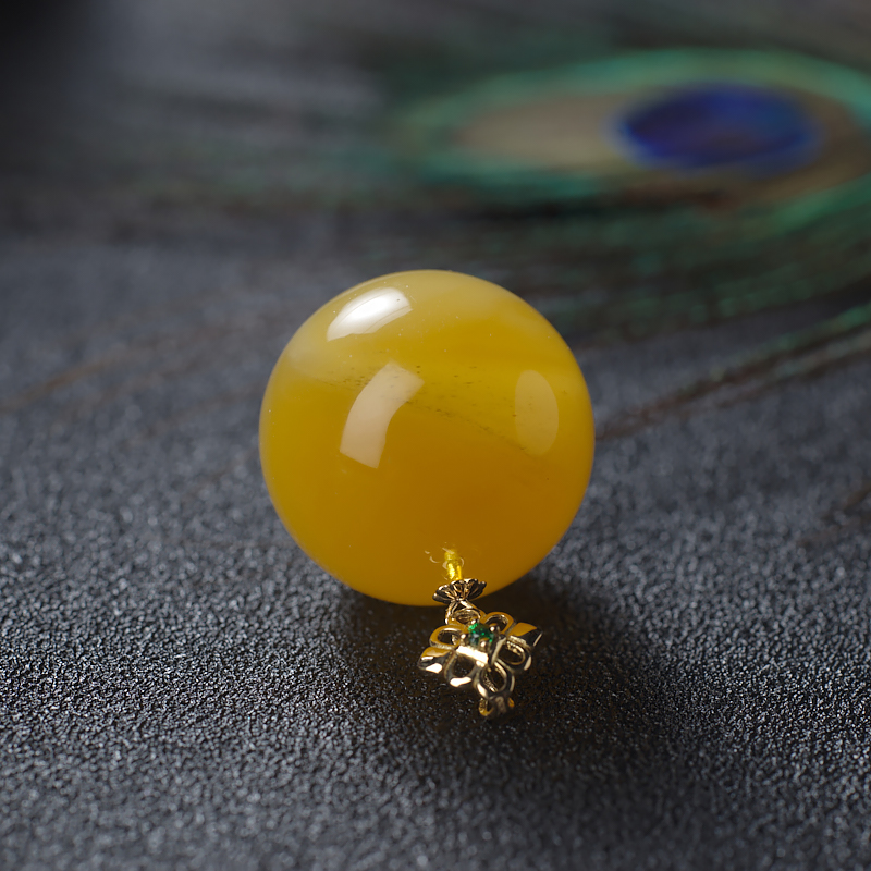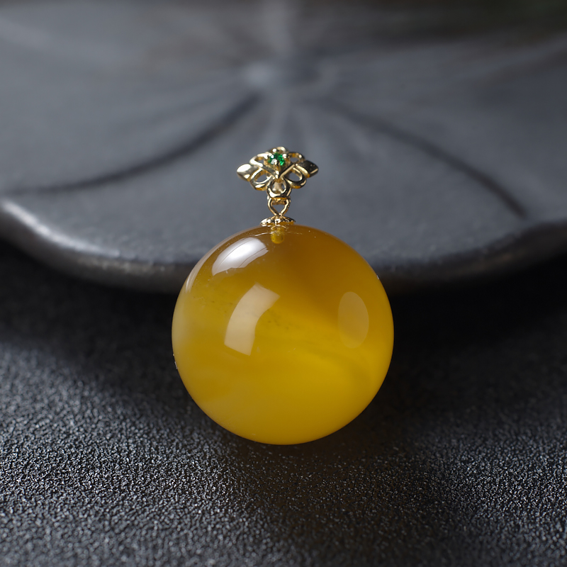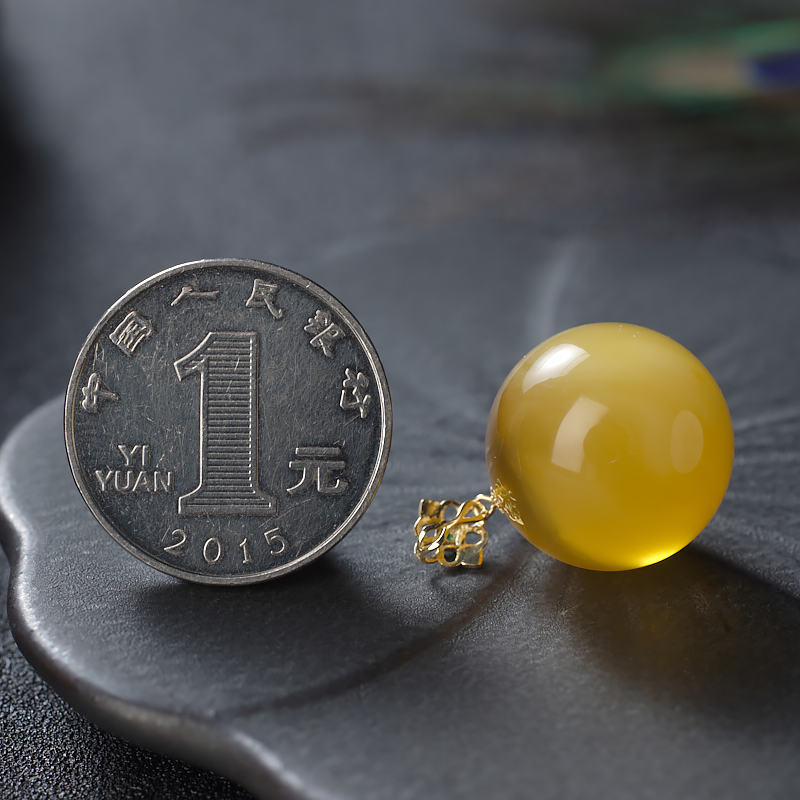• 18K鸡油黄金绞蜜圆珠吊坠