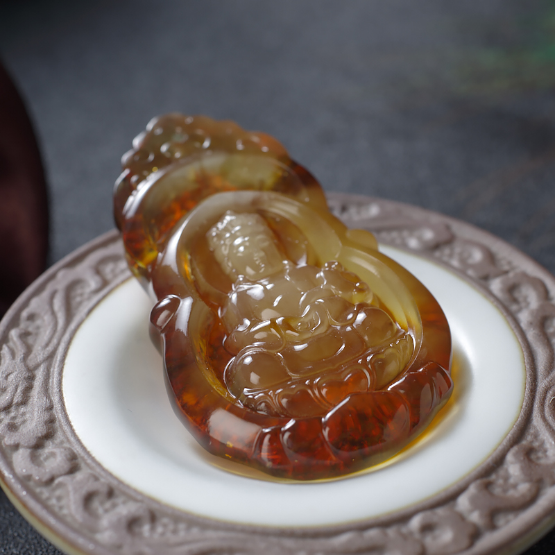 • [名  称] 带皮鸡油黄金绞蜜普贤菩萨吊坠