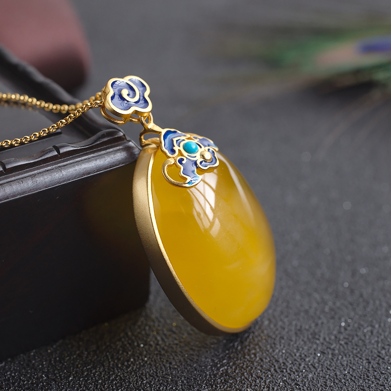 • [名  称] 银镶鸡油黄金绞蜜项链