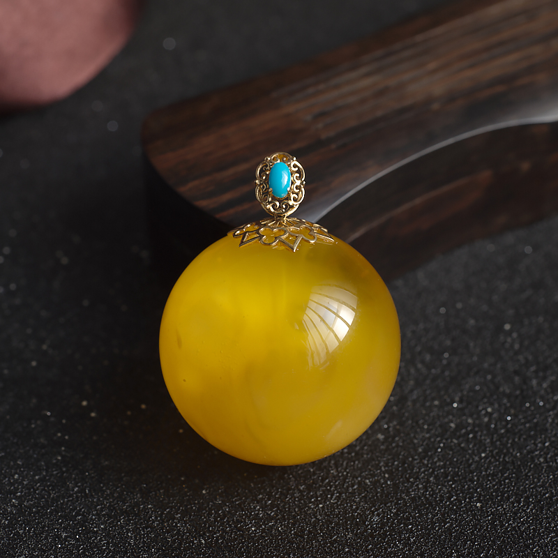 • 18K鸡油黄金绞蜜圆珠吊坠
