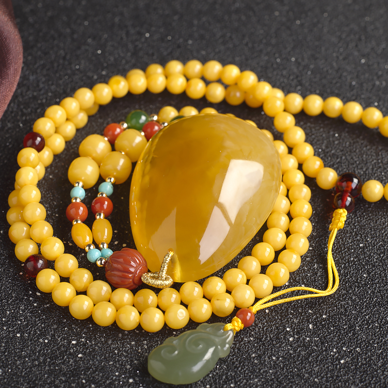 配链全长65cm,蜜蜡珠数106颗